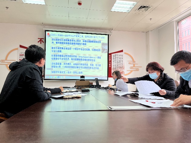 1.學院召開全院教師線上會議,詳細說明了閉環管理期間線上教學方案,梳理了線上教學中遇到的問題并給出解決方案。同時組織任課教師參加教學平臺使用培訓,指導教師通過智慧教務系統不斷完善課程信息、確認直播授課平臺,督促課后填寫教學日志反饋教學情況。