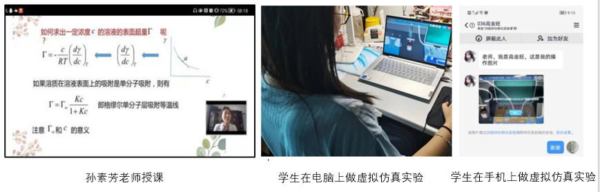 《基礎物理化學實驗1》共開設12個實驗項目,利用2021年開發建設完成的虛擬仿真實驗平臺,采用線上模式開展實驗教學。為最大限度保障線上教學效果,學院教師集體備課,精心準備課件,同時通過后臺監控、課堂練習、在線實時交流等方式設置互動環節,調動學生學習興趣。學生普遍反映這種模式新穎高效、具有一定挑戰性,在課下還可以利用手機自助反復演練,預習和復習也很方便,教學效果良好。