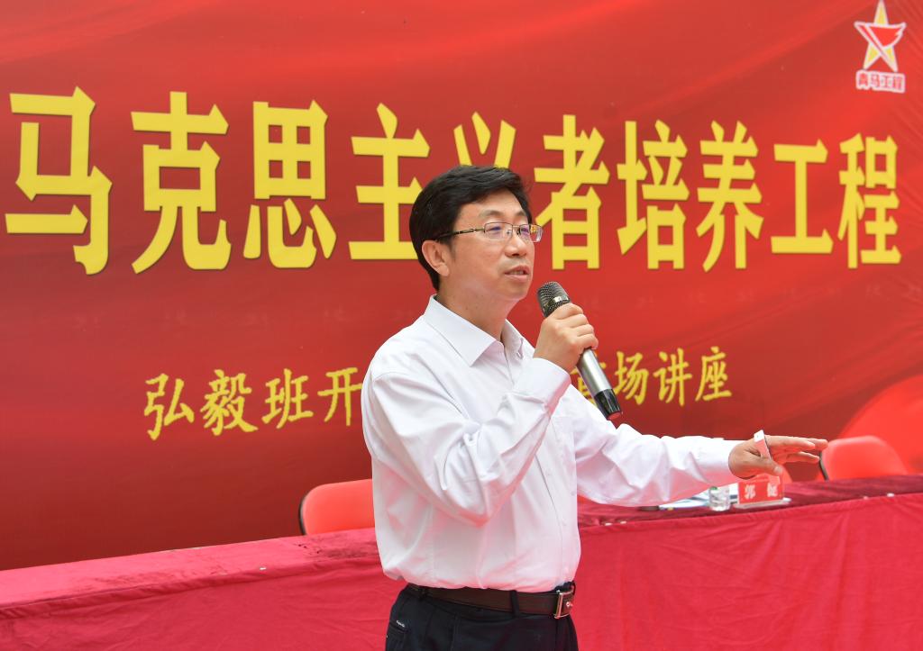 4月21日下午,河北大學2022年春季學期“青年馬克思主義者培養(yǎng)工程·弘毅班”開班式暨首場報告會在五四路校區(qū)舉行。黨委書記郭健出席開班式為“青馬工程·弘毅班”授旗,并以《從黨史中汲取智慧力量》為題作了黨的十九屆六中全會精神宣講報告。