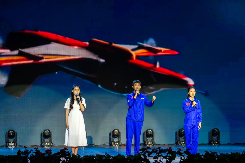 描寫(xiě)我國(guó)試飛員不懼危險(xiǎn),搏擊藍(lán)天故事的我校作品《藍(lán)天試劍》比賽現(xiàn)場(chǎng)