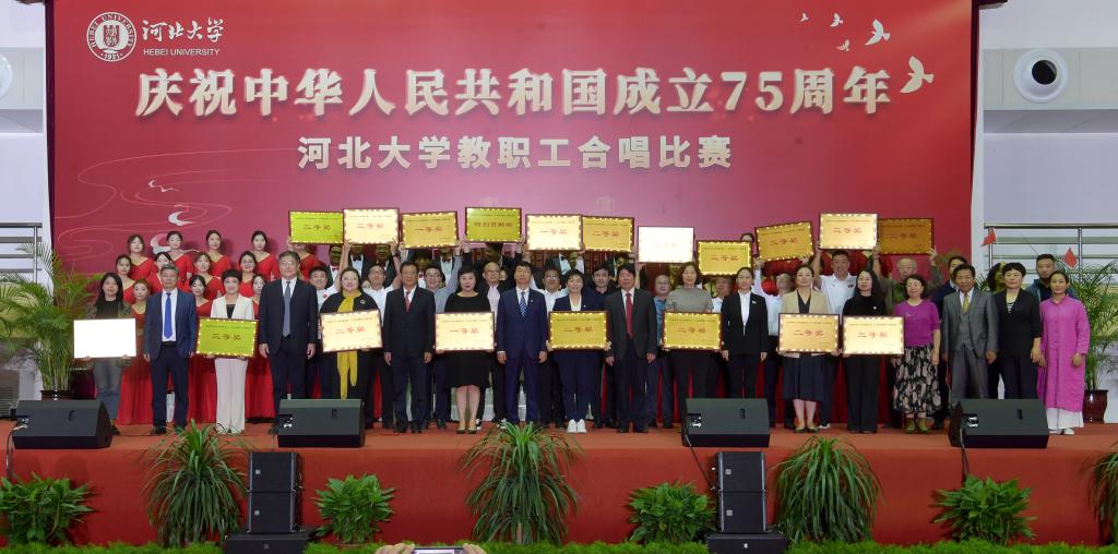 黨委書記郭健在致辭中指出,舉行“河北大學慶祝中華人民共和國成立75周年教職工合唱比賽”,這是用歌聲抒發愛國之情、砥礪強國之志的一次盛會,也是全校師生深入學習貫徹黨的二十屆三中全會、全國教育大會精神,以河北大學高質量發展服務教育強國建設的誓師大會。郭健強調,全校上下要更加緊密地團結在以習近平同志為核心的黨中央周圍,把思想和行動統一到黨中央決策部署上來,堅持不懈用習近平新時代中國特色社會主義思想鑄魂育人,進一步深化學校綜合改革,加快建設一流高水平大學,辦好人民滿意的教育,為加快建設經濟強省、美麗河北,為推進強國建設、民族復興偉業作出新的更大貢獻。