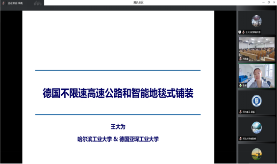 為加強(qiáng)與國(guó)內(nèi)高校的學(xué)術(shù)交流,拓寬學(xué)生的學(xué)科視野,我院于2022年5月6日特邀哈爾濱工業(yè)大學(xué)交通科學(xué)與工程學(xué)院博士生導(dǎo)師、院長(zhǎng)助理王大為教授進(jìn)行了以“德國(guó)不限速高速公路和智能地毯式鋪裝”為主題的線上學(xué)術(shù)報(bào)告,楊三強(qiáng)副院長(zhǎng)主持了本次報(bào)告會(huì),學(xué)院教師和研究生以及道橋方向本科生150余人聆聽了報(bào)告。