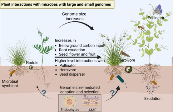 圖1. 植物基因組大小與微生物互作
