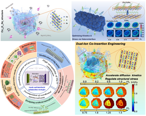 傳統能源的間歇性問題加劇了研發穩定儲能設施的重大需求。可充電鎂電池憑借其高的能量密度、豐富的資源儲備、低廉的成本以及出色的安全性,已成為清潔能源領域競相研發的新熱點,并展現出巨大的商業化應用潛力。然而,鎂電池的發展仍面臨諸多關鍵技術難題。其中,電極材料中鎂離子的緩慢擴散、晶格膨脹引發的嚴重應力、以及鎂電極表面枝晶的形成與腐蝕等問題尤為突出,嚴重制約了鎂電池的性能提升與廣泛應用。